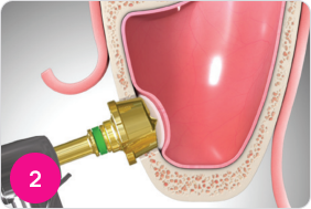 Сформируйте латеральный доступ с помощью LS-риммера. Держите риммер в вертикальном устойчивом положении во время сверления. Обе стороны лезвия риммера должны контактировать с костью на всем протяжении сверления. Скорость сверла 2000 об/мин.